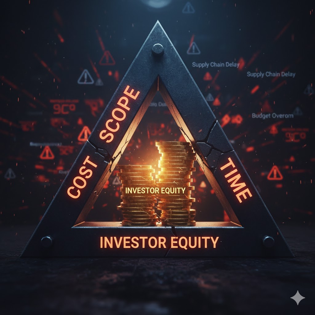 The project operated under a rigid fixed-financing structure where any schedule slip increased carrying costs and any budget overrun directly reduced investor equity. Managing 45+ professionals, including architects, engineers, general contractors, and subcontractors, created high risk for scope creep, misalignment, and cascading schedule delays. Long-lead procurement items and supply chain volatility further threatened the critical path and Certificate of Occupancy timeline.